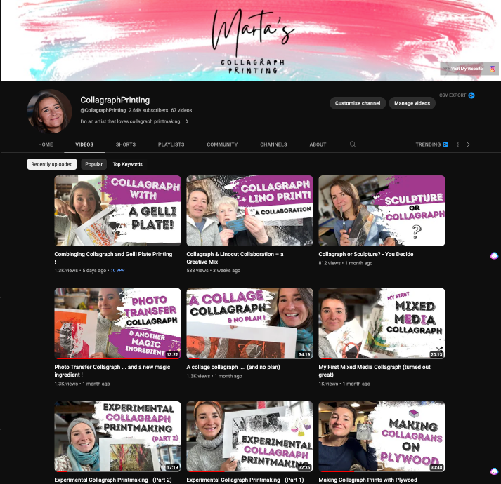 A few years back, I started to document my creations and I still get a huge amount of satisfaction capturing my collagraph adventures on my YouTube Channel -