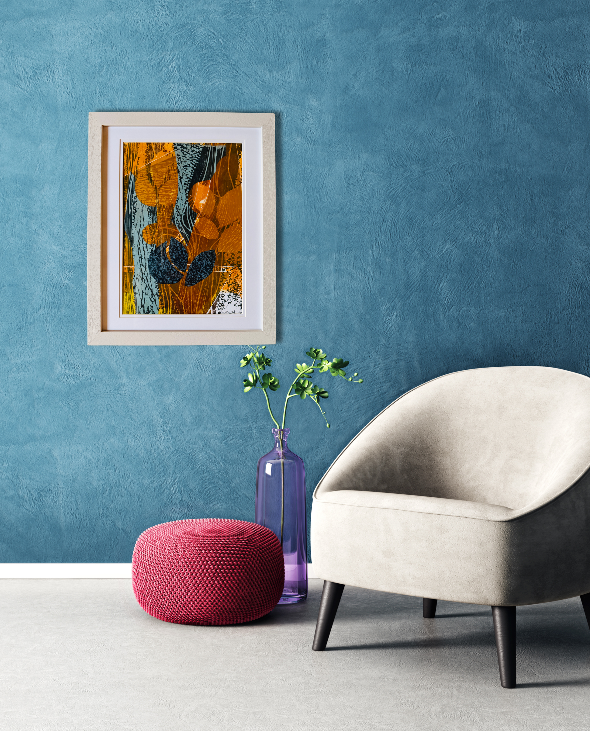Lino print with monoprint and chine collè.